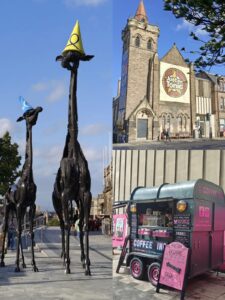 “Underwear must be worn with kilts when wind speeds exceed 25 mph,” a sign proclaims. It is not a government decree, though—just some well-meaning citizen. For a city to earn the badge for hosting the best global performance festival, it has to commit to the cause. Quirky hats on sculptures, inviting café pop-ups, signages, street art, and more… the last few days of wandering the streets have made it clear that Edinburgh is up to the task.