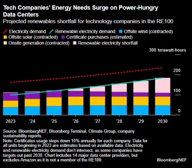 The FT says that the big tech companies are currently lobbying hard to change the rules governing how RECs can be used, with two opposing factions. One group, led by Amazon and Meta, advocates for a broader interpretation of what the GHG Protocol already allows. The other faction, led by Google and Microsoft, contends that time- and location-based matching of renewable production and energy consumption is required for data centers for more accurate reporting.