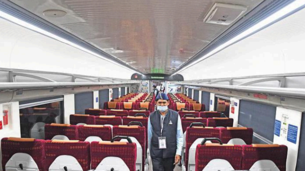 Empty Vande Bharat carriage with only the onboard staff