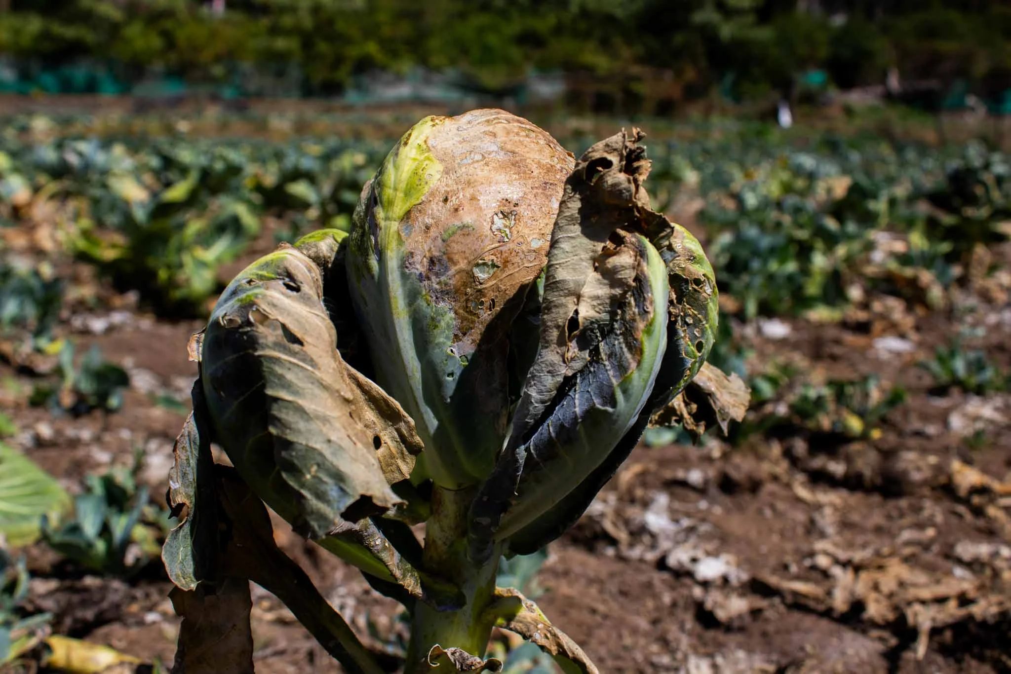 The cabbages were planted in the Pinkerpost area when frost struck and blackened them.
