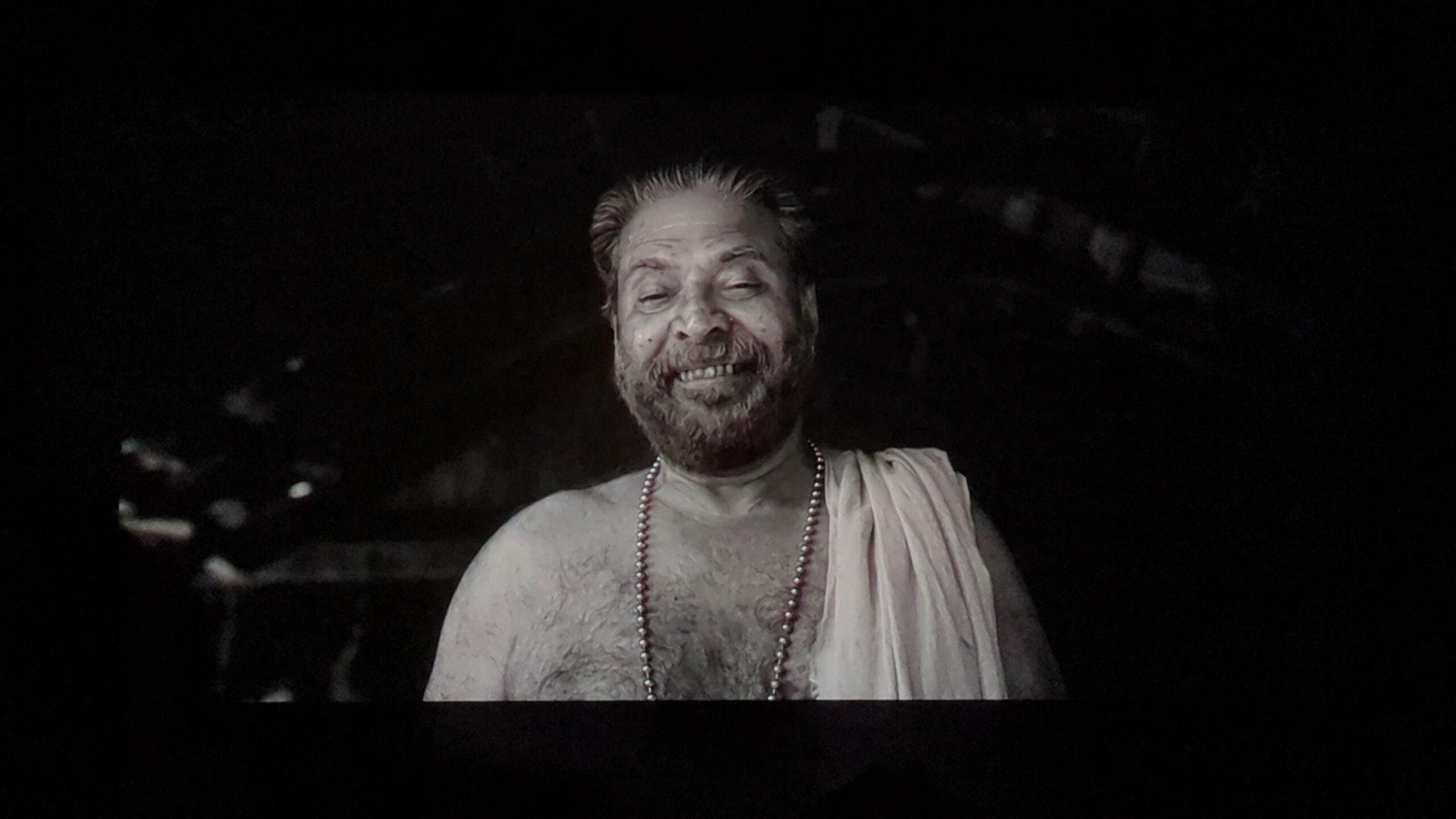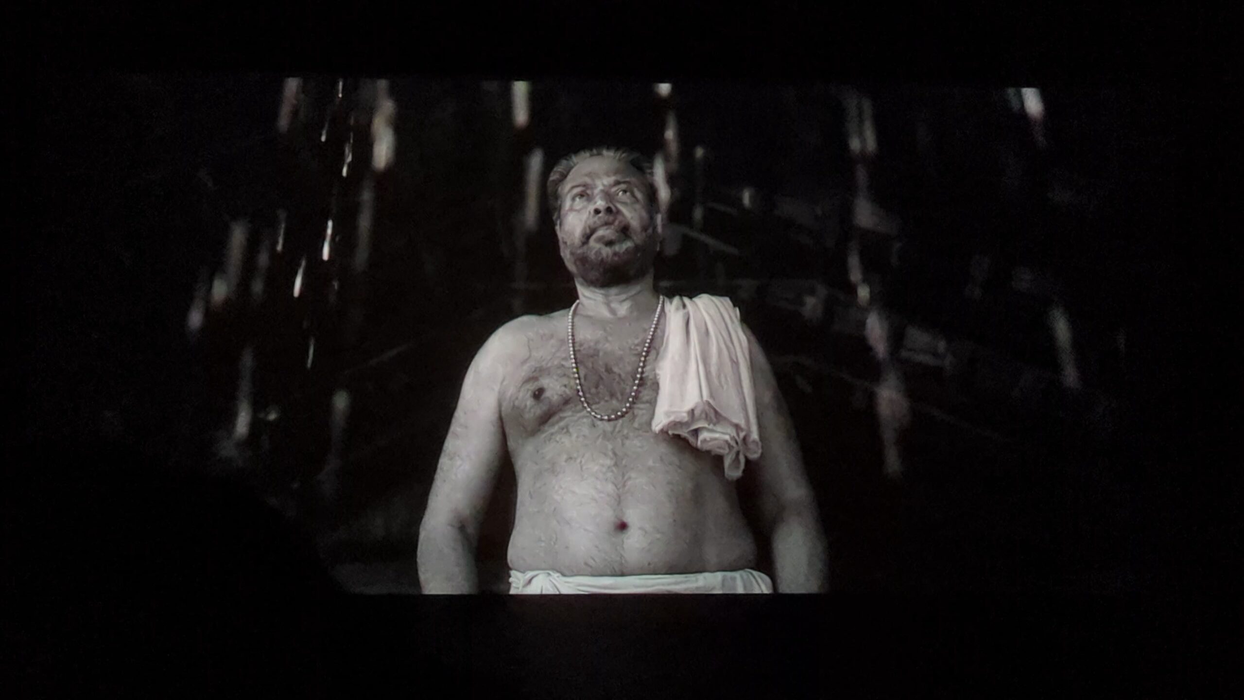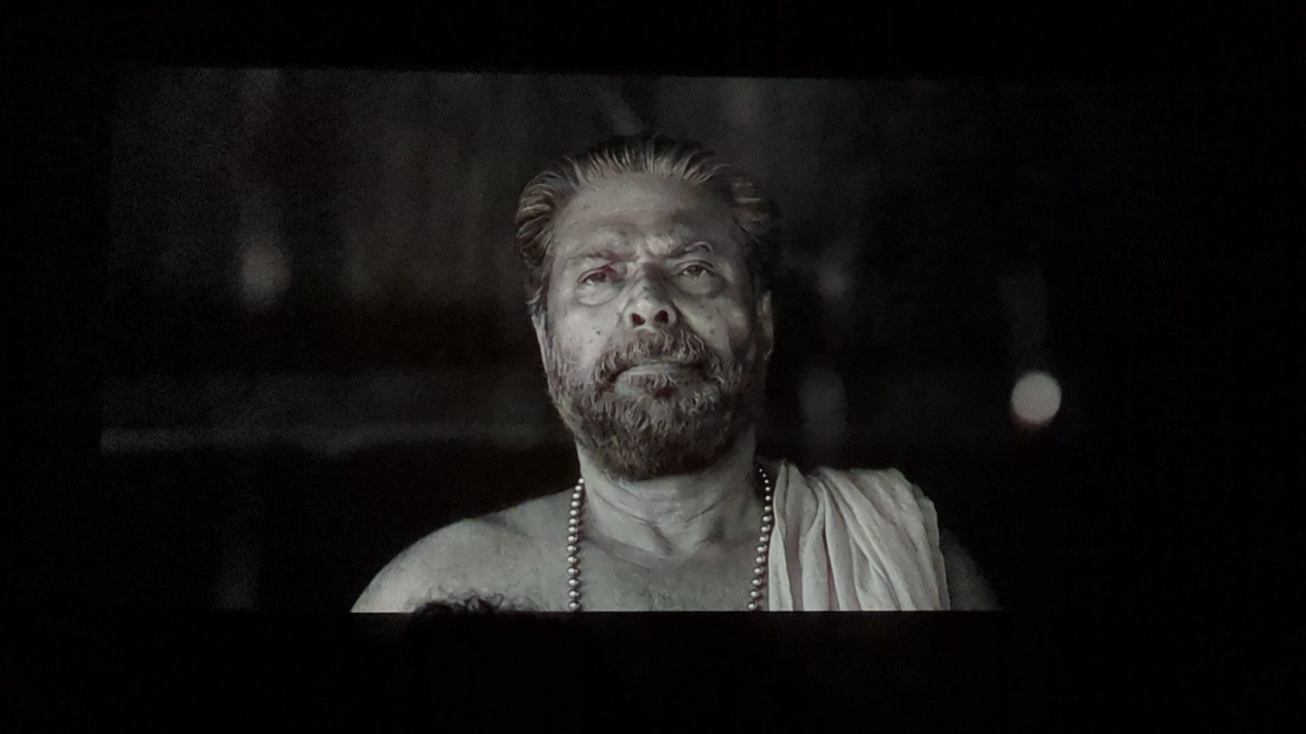 Even though, during the first initial minutes of Potti’s introduction, I felt Mammootty overdoing the Namboodiri accent a little bit, I would award the blame to the film’s dialogues (though well-researched and apt to the period) by celebrated novelist T.D Ramakrishnan, that personally felt out of place with a few of the scenarios unfolding on-screen for me. Despite sharing a similar shade with his earlier iconic renditions of Bhaskara Patelar of Adoor Gopalakrishnan’s Vidheyan or Murikkinkunnath Ahmad Haji of Paleri Manikkyam, one would not find a tinge of shadow of any of those roles in Mammootty’s interpretation of Potti – the mythical sorcerer, in a performance that would surely be talked about for ages to come. Equally breathtaking are Arjun Ashokan as Thevan and a fantastic Siddharth Bharathan as Potti’s cook as they slowly begin to question their sanity and sense of reality in their life inside the four confines of the Mana, where time stands still and the firmament wails nonstop in fiery downpours.