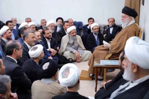 Iran’s Supreme Leader Ali Khamenei during a meeting with a group of senior officials on April 15, 2025