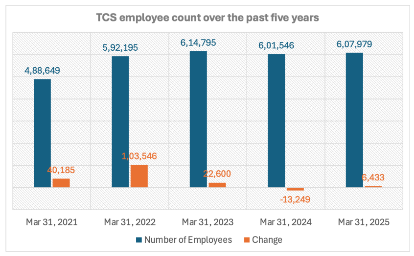 TCS has stated that it will reduce its global workforce by 2% this fiscal year. With a current global headcount of more than 600,000, the reduction will affect approximately 12,000 employees. This is one of the company’s largest workforce reductions to date. It indicates broader shifts in the IT industry, such as macroeconomic uncertainty, cautious client spending, and the adoption of AI and automation.