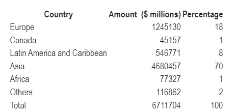 Asia (led by China) holds 70% of U.S. debt. The U.S. is bracketed with others and still comes to less than 2%. Clear examples of leveraged economies that preach to the corporate world on high gearing!