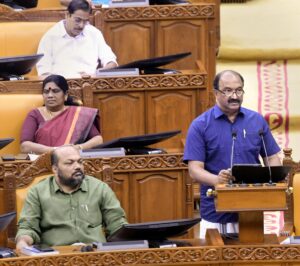 ബജറ്റ് അവതരണത്തിനിടെ ധനമന്ത്രി കെ എൻ ബാലഗോപാൽ