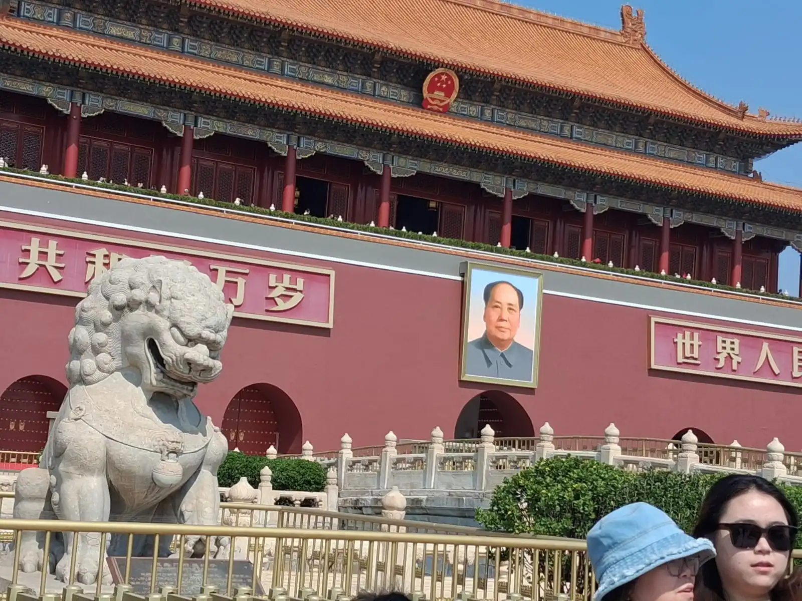 ടിയാനന്മെന് സ്ക്വയറില്, പിറകിലെ ഭിത്തിയില് മവോസേതൂങ്ങിന്റെ പടുകൂറ്റന് ചിത്രങ്ങള് സ്ഥാപിച്ചിട്ടുണ്ട്. ഇപ്പോഴത്തെ പ്രസിഡന്റ് സിജിന്പിങ്ങി(Xi Jinping)ന്റെതടക്കം ആരുടേയും ചിത്രങ്ങള് എവിടെയും കണ്ടില്ല. സ്ക്വയറിന്റെ ഇടതുഭാഗത്തായി ചൈനയുടെ പാര്ലിമെന്റ് മന്ദിരമാണ്. വലതുവശത്ത് ചരിത്രപ്രസിദ്ധമായ ലോങ്ങ് മാര്ച്ചിന്റെ മനോഹരമായ ശില്പമുണ്ട്. ഡല്ഹിയിലെ സര്ദാര് പട്ടേല് മാര്ഗില് സ്ഥാപിക്കപ്പെട്ട ഗാന്ധിജി നയിക്കുന്ന ദണ്ടി മാര്ച്ചിന്റെ (ഗ്യാരഹ് മൂര്ത്തി) ശില്പത്തെ ഓര്മപ്പെടുത്തുന്നുണ്ട് ലോങ്ങ് മാര്ച്ചിന്റെ ശില്പം.