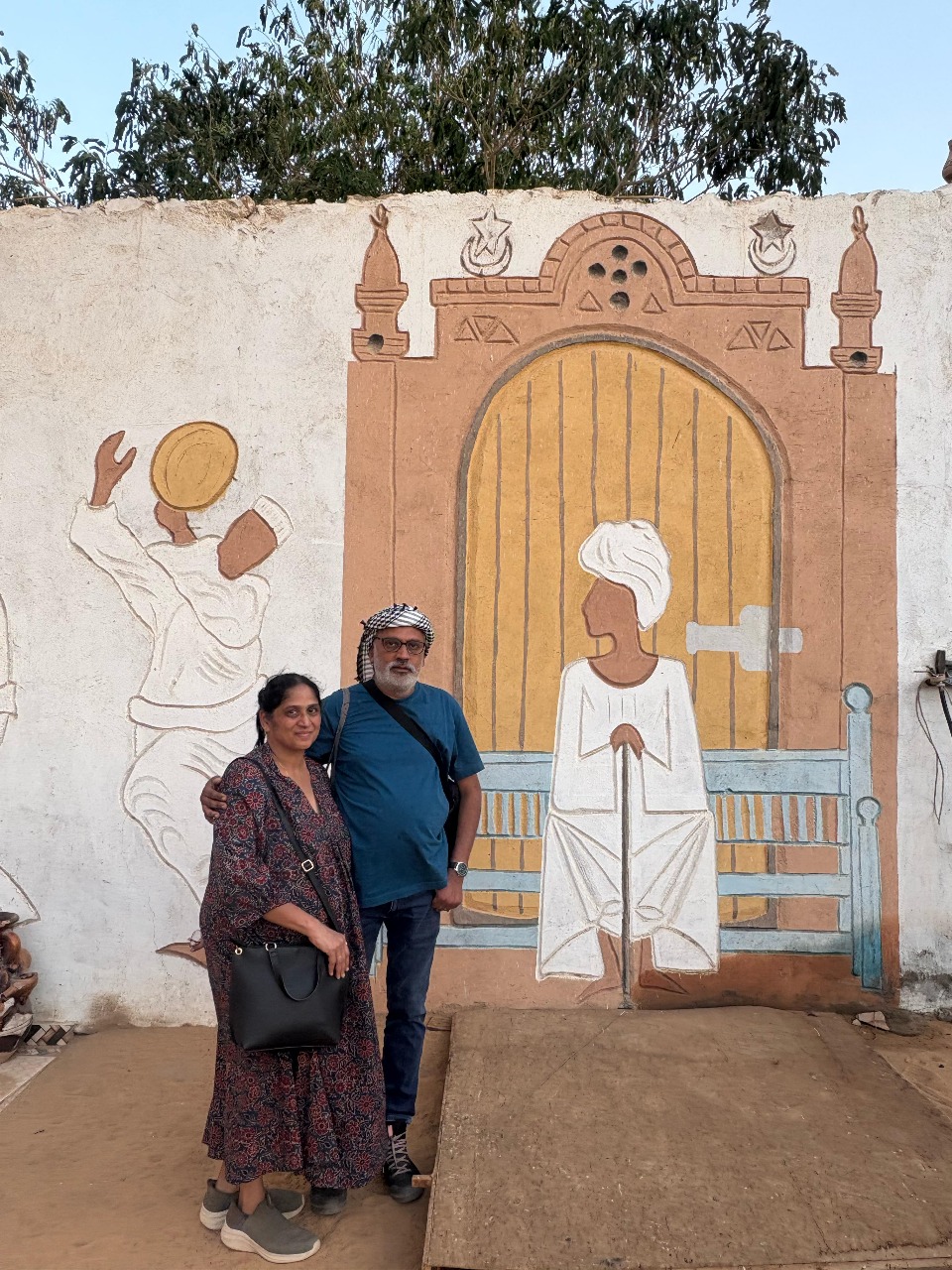 നൂബിയന് ഗ്രാമ ജീവിതം പരിചയപ്പെടാനായി ഞങ്ങള് പോയത് അസ്വാനിലെ നൈല് നദിയ്ക്കക്കരെയുള്ള ഒരു വീട്ടിലാണ്. ഈ വീട് നൂബിയന് രീതിയില് നിര്മ്മിക്കപ്പെട്ടതും, വീട്ടിലുള്ളവര്ക്കു പുറമെ റിസോര്ട്ട് എന്ന രീതിയില് വിനോദ സഞ്ചാരികള്ക്കു കൂടി താമസിക്കാവുന്ന വിധത്തിലുള്ളതുമാണ്. ഉയരം കൂടിയ മതിലിനകത്ത് വിശാലമായ മുറ്റം ഉണ്ട്. വളപ്പിനകത്തേക്ക് കടക്കുന്ന വാതില്, മനോഹരമായി വിവിധ ചായങ്ങളുപയോഗിച്ച് ചിത്രപ്പണികള് ചെയ്തതാണ്. കുടുംബത്തിന്റെയും പ്രദേശത്തിന്റെയും നൂബിയന് ജീവിതത്തിന്റെയും മുദ്രകള് പേറുന്ന പല വരകളും ചിത്രങ്ങളും മതിലുകളിന്മേളും ചുമരുകളിന്മേളും വരച്ചു വെച്ചിട്ടുണ്ട്. നൃത്തച്ചുവടുകള്, ജ്യാമിതീയ രൂപങ്ങള്, അക്കാലത്ത് ആരാധിച്ചിരുന്ന മൃഗ/പക്ഷി രൂപങ്ങള്, ഈന്തപ്പനയുടെ ചിത്രങ്ങള് എന്നിവയും വരകളിലുള്പ്പെടുത്തിയിട്ടുണ്ട്.