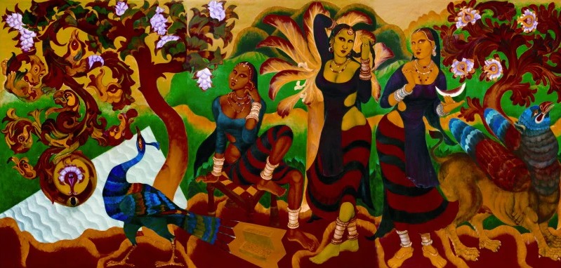 പാരമ്പര്യം, കേരളത്തിൽ കണ്ടു വളർന്ന ചുവർചിത്രങ്ങൾ, അക്കാദമിക് റിയലിസം, കലയിലെ പ്രകൃതിയുടെ ശക്തി, ഇന്ത്യൻ മിനിയേച്ചറുകളിൽ നിന്നുള്ള സ്വാധീനം, ജാപ്പനീസ്, ചൈനീസ് കലകളോടുള്ള അഭിനിവേശം എന്നിവയുടെ മിശ്രിതം, അദ്ദേഹത്തിന്റെ കലാസൃഷ്ടിയിൽ നമുക്കു കാണാം. രാംകിങ്കറിന്റെ ഉപദേശത്തിൽ നിന്ന് പ്രചോദനം ഉൾക്കൊണ്ട് അദ്ദേഹം ലളിതമായ ചിത്രംവരയിൽ വിട്ടുകളയാൻ പറ്റാത്തവിധം ഉന്മാദിയായി. ചിത്രങ്ങൾ വരച്ചുകൊണ്ടേയിരുന്നു. ചരിത്രത്തിലെ മറ്റെല്ലാ മഹാചിത്രകാരന്മാരെയും പോലെ. ഇത് ഇന്ത്യൻ ഗ്രാമങ്ങളെക്കുറിച്ചുള്ള അദ്ദേഹത്തിന്റെ ഗ്രാഹ്യത്തെ സഹായിക്കുകയും പുരാണ വിഷയങ്ങളും ലളിതമായ കഥകളും പല മാത്രകളിൽ കൂടിച്ചേരുന്ന ബൃഹദാഖ്യാന ചിത്രങ്ങളിലേക്ക് അദ്ദേഹമതിനെ വിവർത്തനം ചെയ്യുകയും ചെയ്തു.