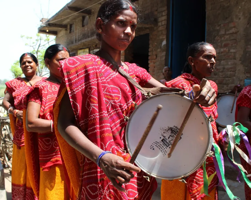കൃഷിയോഗ്യമായ ഭൂമിയുടെ അളവ് ചുരുങ്ങിച്ചുരുങ്ങി ഇല്ലാതായി. ജോലിയും. അവിടെ 10 സ്ത്രീകൾ 2012 ൽ ഒരു ഡ്രമ്മർ ബാൻഡ് രൂപീകരിക്കുകയാണ്: സർഗ്ഗം മഹിളാ ബാൻഡ്. പട്ടികജാതി വിഭാഗത്തിൽ തന്നെ ഏറ്റവും താഴേക്കിടയിലുള്ളതും വിവേചനങ്ങൾ അനുഭവിക്കുകയും ചെയ്യുന്ന മഹാദളിത് വിഭാഗത്തിൽ പെടുന്നവരാണ് എല്ലാവരും. സ്വയം സഹായസംഘത്തിൽ ഒന്നിച്ച് പ്രവർത്തിച്ചിരുന്ന ഈ സ്ത്രീകൾ അച്ചാറിനും പപ്പടത്തിനും പകരം പുതിയത് എന്ത് എന്ന ചിന്തയിലാണ് ബാൻഡിലേക്ക് എത്തുന്നത്. പാട്ന ആസ്ഥാനമായ നാരി ഗുഞ്ജൻ എന്ന സംഘടന അവർക്ക് പഠിക്കാനാവാശ്യമായ സഹായങ്ങൾ നൽകുന്നു. നാട്ടിൽ നിന്നും വീട്ടിൽ നിന്നുമുള്ള നിരന്തരമായ എതിർപ്പുകൾ. പുരുഷന്മാരെപ്പോലെയാകാൻ ശ്രമിക്കുന്നു എന്ന പരിഹാസം. തോറ്റു പിന്മാറാൻ അവർക്ക് മനസ്സില്ലായിരുന്നു. ഇന്നവർ പട്നയിലും സമീപ ജില്ലകളിലും മാത്രമല്ല ഒഡീഷയിലും ദൽഹിയിലും ബാന്ഡ് ഷോകൾ നടത്തുന്നു. അശുദ്ധിയുടെ പേരിൽ മാറ്റിനിർത്തിയിരുന്ന സവർണ്ണവിവാഹങ്ങളിലും ഹോട്ടലുകളിലും ക്ഷണിക്കപ്പെട്ട അതിഥികളാകുന്നു. തങ്ങൾ സമ്പാദിക്കുന്ന പണം ഭർത്താക്കന്മാർക്ക് നൽകില്ല എന്ന് അവർ തീരുമാനിച്ചിട്ടുണ്ട്. അങ്ങനെ അവർ സ്വാതന്ത്ര്യത്തിന്റെ പുതിയവിഹായസ്സുകൾ തേടി പറക്കുകയാണ്- ഉറപ്പുള്ള ചിറകുകളുമായി. പൂജ അവസ്തി പകർത്തിയ സർഗ്ഗം ബാൻഡിന്റെ ചിത്രങ്ങളും വീഡിയോയും പ്രദർശനത്തെ സമ്പുഷ്ടമാക്കും എന്നതിൽ തർക്കമില്ല.