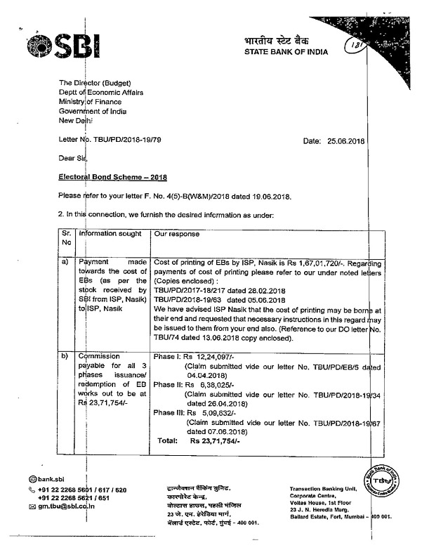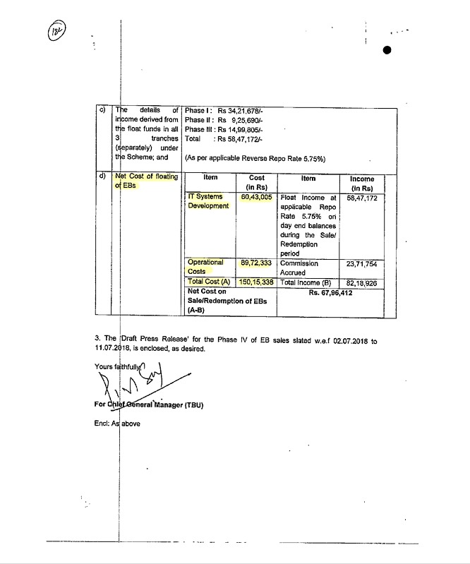 In a letter to The Director (Budget) Dept of Economic Affairs, Ministry of Finance dated 25/06/2018 SBI has stated that it has spent Rs. 60,43,005/- for IT system Development for Electoral Bonds. Now, how is the bank justified in saying that providing the records needs more time? If this is the situation what is the use of new age IT systems that have been acquired?